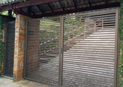 O modelo mais comum de portão é o deslizante, mas também existe o portão pivotante e o portão basculante. Os portões podem ser manuais ou automáticos, e oferecem praticidade, mais segurança e conforto.